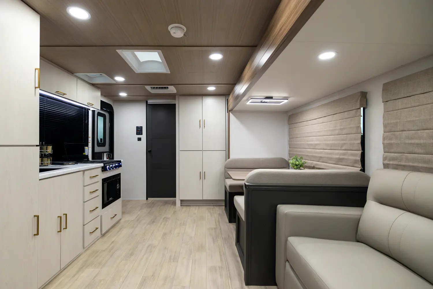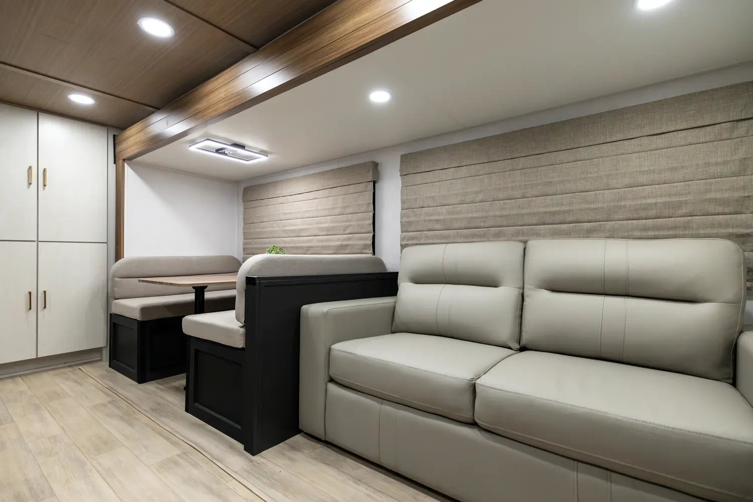 • True Flush Floor Slideouts with Fabric-Backed Shaw Linoleum