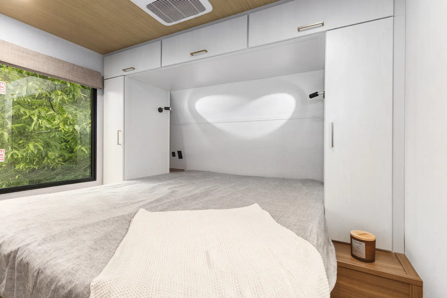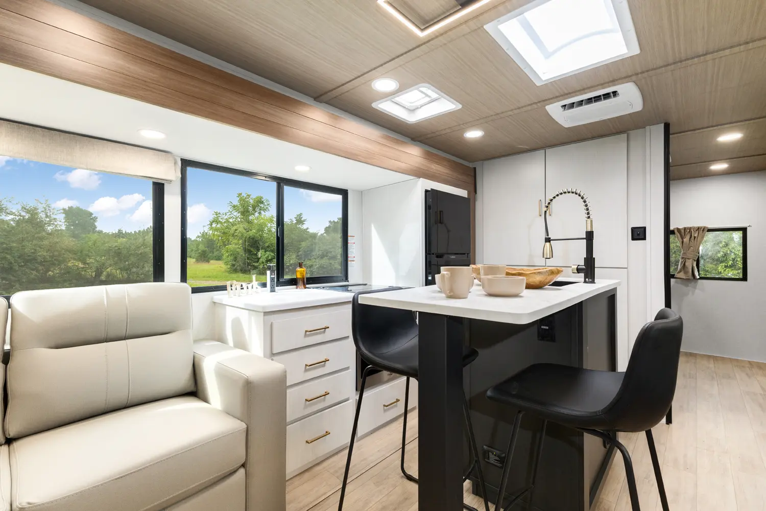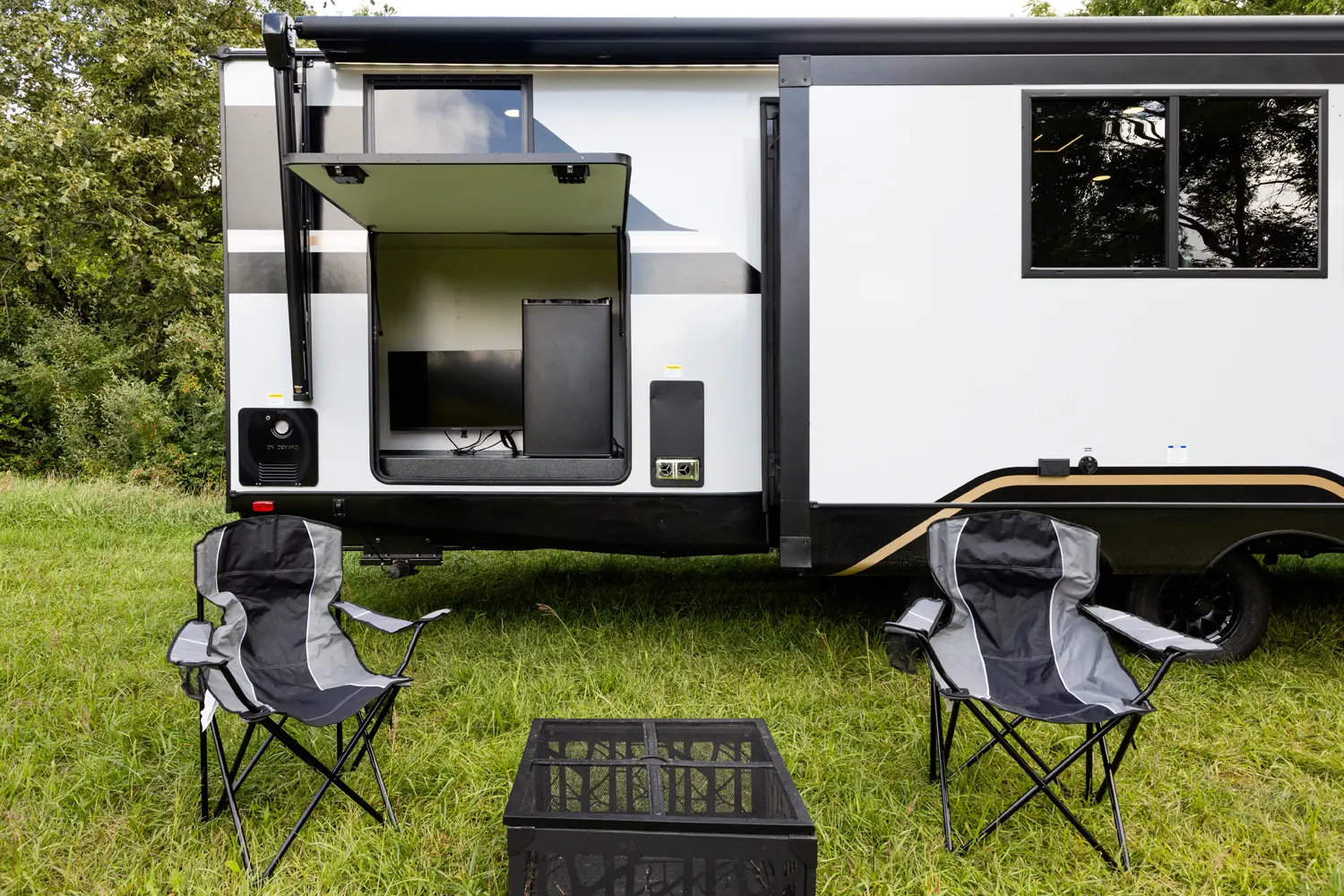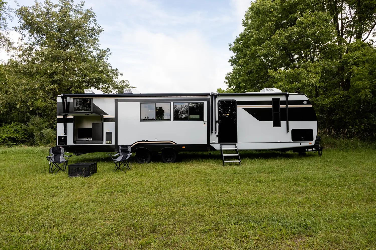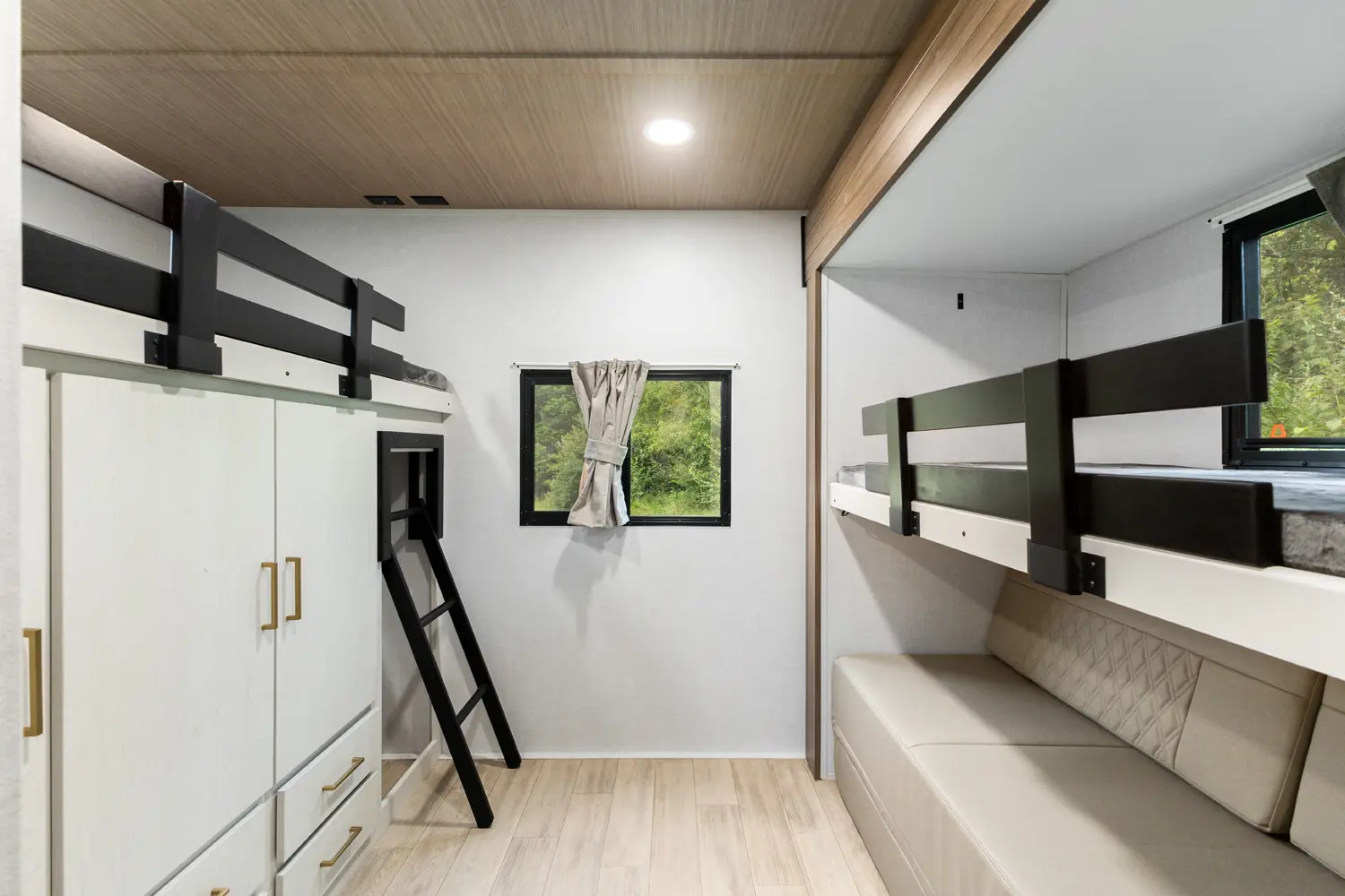 The 3400Bh is our traditional bunkhouse model which features sleeping capabilities of up to 11, opposing furniture/entertainment area, and a dedicated bunkroom slide. This pull-behind makes the opportunities endless for family and friends looking for a fun adventure.