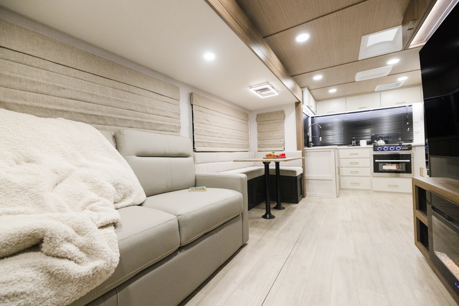 • True Flush Floor Slideouts with Fabric-Backed Shaw Linoleum