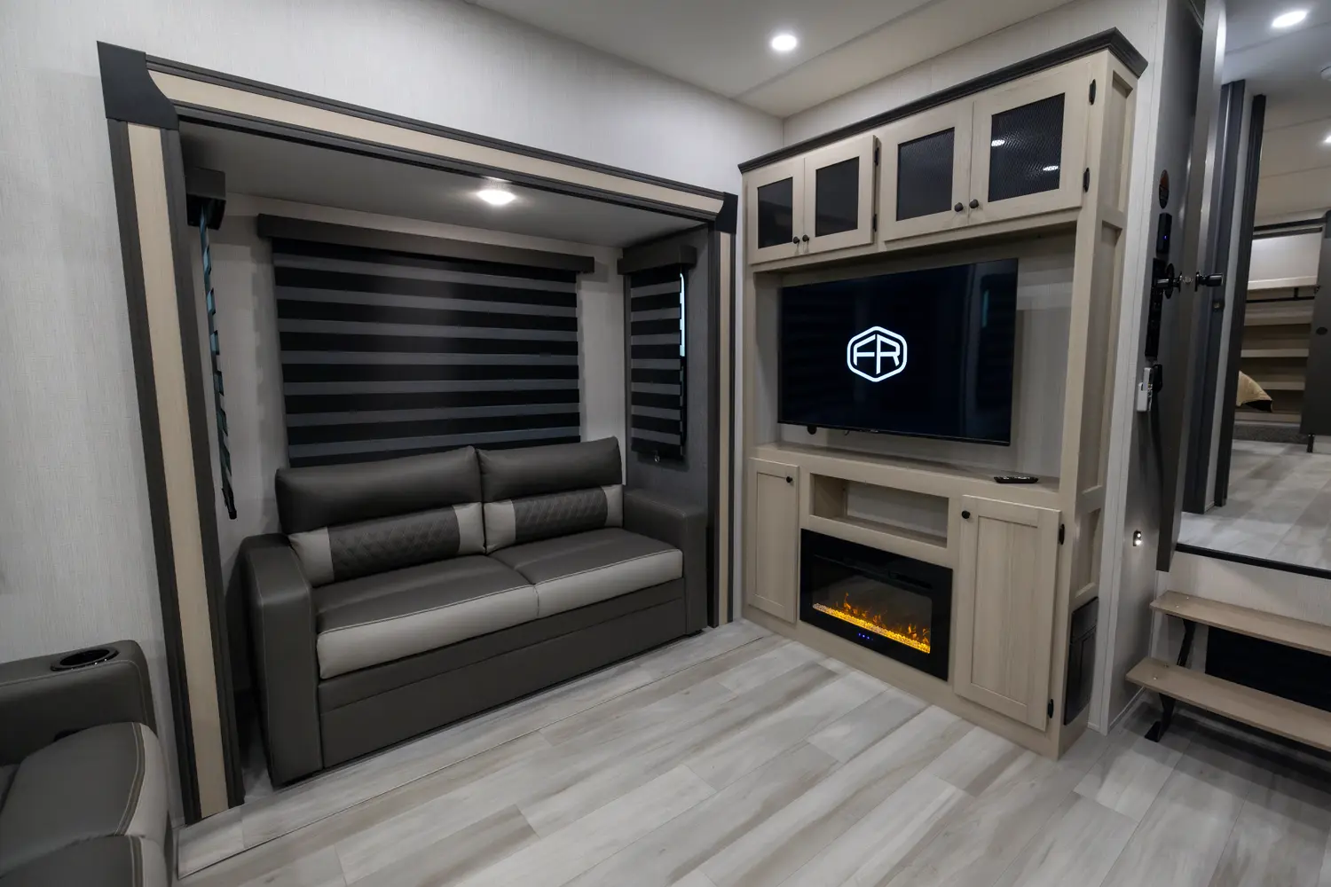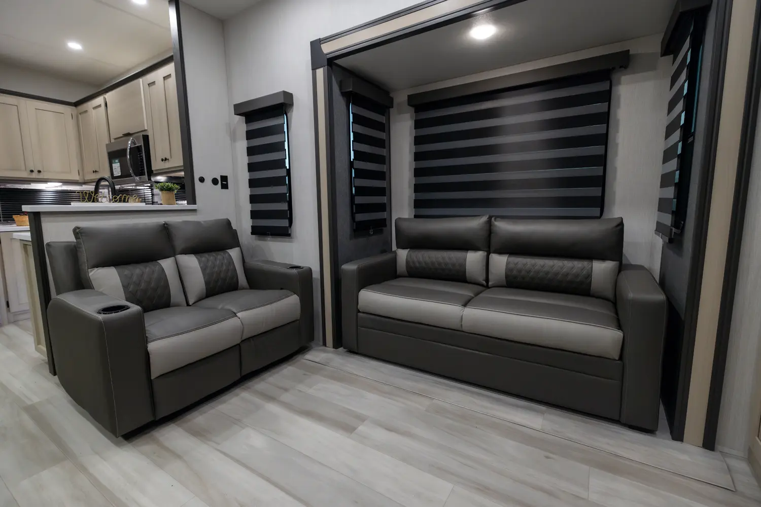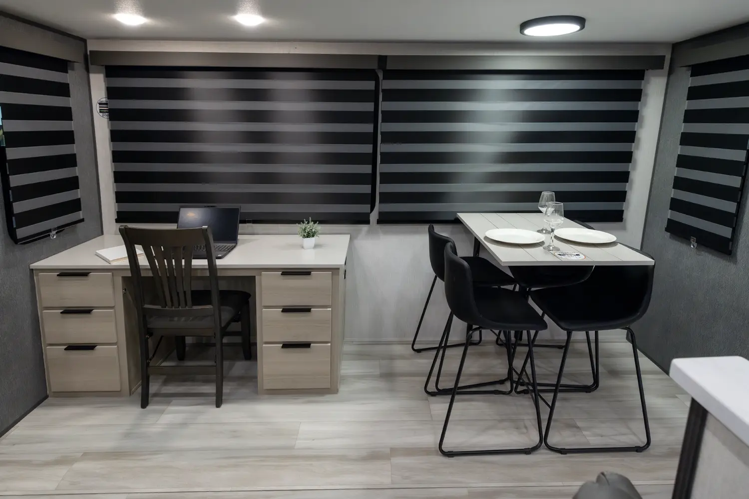 The 33CHEF is a functional rear kitchen floorplan that’s perfect for couples who love to cook and need space to work remotely! With its innovative design, spacious living room, and premium features, this 5th wheel is sure to impress.