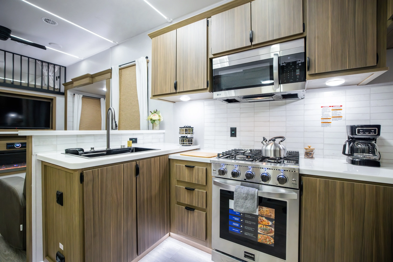 The Wildwood Grand Lodge 42FK is a truly exceptional destination trailer. The large front kitchen is equipped with residential appliances, tons of cabinet and pantry space, and a free-standing dinette. The large living area provides two sofas and an entertainment center with TV and fireplace, while the large rear master bedroom offers a full wardrobe and dresser. The HUGE walk-up loft is perfect for friends and family, with four separate bunks and plenty of space to stretch out.