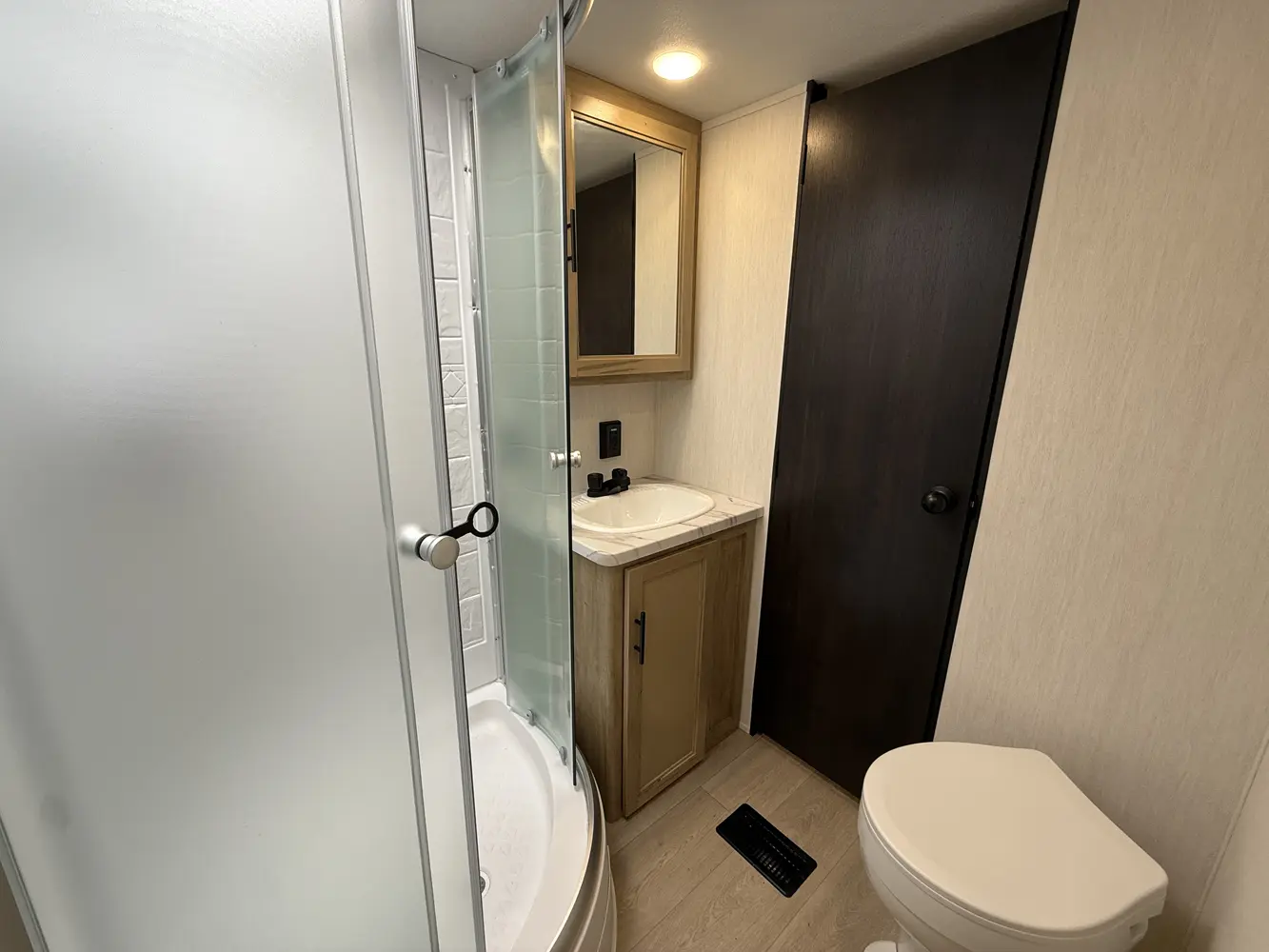 • Blackout Glass, Safety Slam, Friction Hinge Entry Door with Window and Shade Prep (N/A on LP models)