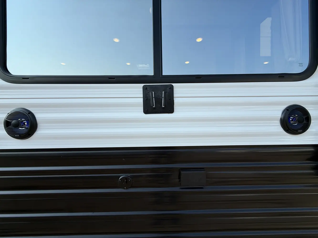• Cherokee Black Label Wolf Den (Deep Tinted Frameless Automotive Glass Windows, High Gloss Gel Coat Exterior Sidewalls, Multicolor Reading Lights, Pillowtop Mattress Upgrade, Solid Surface Countertops, Thermo Foil Arctic Insulation)