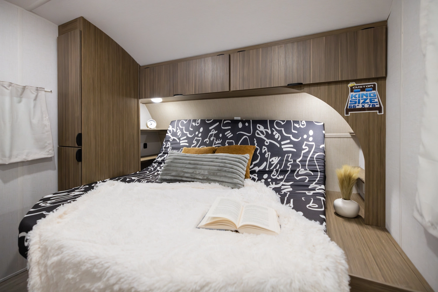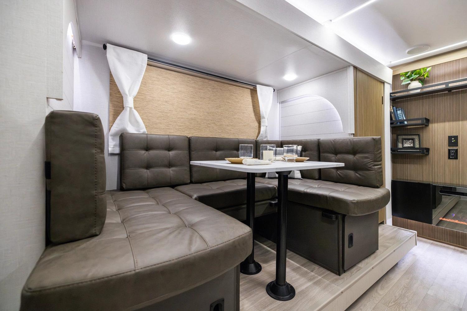 The 240BHXL weighs in at less than 6,000 lbs. for increased towability, without sacrificing any of the comfort! This double-over-double bunkhouse packs a lot of features into its 28'10” length, including a large comfy booth dinette with panoramic windows, walk-in pantry, modern kitchen with stove, cooktop, microwave, and an oversized refrigerator! The bathroom provides a walk-in shower with skylight and a convenient second door to the outside.